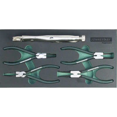 Pěnový modul EVA, vel. „B“ (190 x 380 mm): Sada kleští na pojistné kroužky, tzv. segrovky, a samosvorných kleští (5 ks) – JONNESWAY P32M105KVPrakticky sestavená...