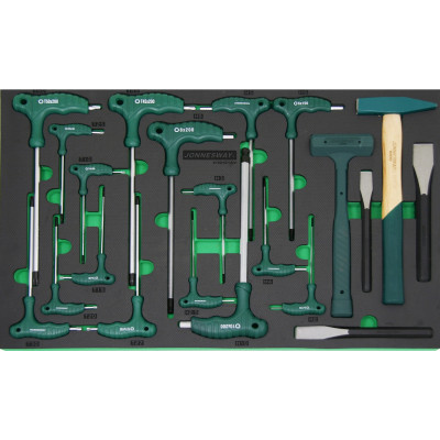 Pěnový modul EVA, vel. „C“ (570 x 380 mm): Sada ručního nářadí různých druhů, 21 dílů – JONNESWAY H10121SVProfesionální sada ručního nářadí k použití v autoservisu,...