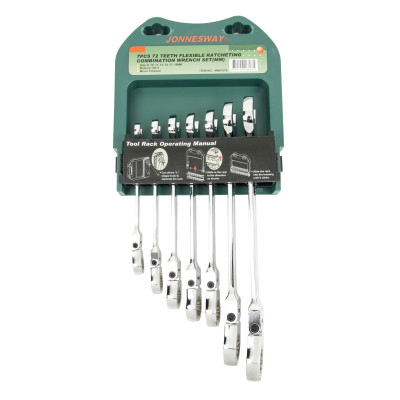 Sada ráčnových očkoplochých klíčů s kloubem v pořadníku, 7 ks, 8-19 mm - JONNESWAY W66107S